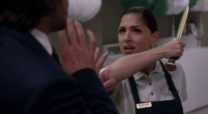 Shoshannah: All that was scripted. It was on the page. I was so bad at it. I was asking John [the director] if I could be funny with it, and he was like, no, listen, Shoshannah, you need to try to be sexy. And I was like right, the key word here is: try.