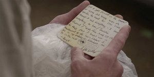 Walker is mired in guilt over Hoyt’s death and over how impacted his kids have been by all the losses of the last year, blaming himself entirely. Geri also feels guilty; she’s wearing Hoyt’s jacket and has the bar coaster on which he wrote his last will and testament, leaving behind a plot of land. Geri had mentioned to him once that it would be a nice place to settle down, and he apparently took it seriously and bought it.