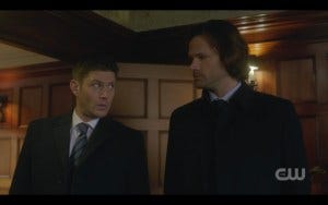 I had a feeling I would like this episode, since both Jensen and Jared had talked about it at the Orlando convention. I had said to Jensen that I hadn’t felt like we’d seen a lot of Sam and Dean being brothers this season, and he told me he thought I’d enjoy this particular episode – that it was the boys teaming up to search for something and there was a lot of teasing each other, very old school SPN. (He knows me a little, I guess…) Jared also talked about filming this episode at that convention.