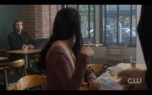 Dean gets to turn the tables when the young woman in the coffee shop who’s a fan of “the supernatural” clearly appreciates Dean – but Sam nips that in the bud by calling Dean over to do more research. This dynamic between the brothers is such classic early season Supernatural, which never fails to make me happy.