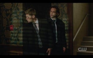 I really enjoyed last week’s Supernatural episode, which feels really good to say. I don’t like not loving episodes – it makes me feel like my entire universe is somehow tilted in a wrong direction – so it’s almost a relief when Show comes back with an episode that I can thoroughly enjoy. From the very first scenes, I loved the look of it – the dark and dimly lit, atmospheric quality that it had. In some ways, it was very much an old school Supernatural episode, dark (literally) and full of twists and turns and Winchesters on a hunt for something personally important to them. Struggling with conflicting ideas of what’s right and wrong and whether the ends justify the means and struggling with their own faith in the face of overwhelming odds and too many losses. All the while teasing each other in the easy way that brothers who know they have each others’ backs no matter what can do – and knowing when the other doesn’t need teasing, but listening and empathy, and giving it freely. All that was in this episode, together with a double-triple (quadruple?) game of Clue with the Winchesters in the middle. Thank you, Bob Singer and Andrew Dabb, for writing such a satisfying episode.