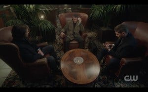 Meanwhile, Dean and the Father have a little talk about God and how neither of them expects him to swoop in and save the day, but an interventionist God isn’t what the Father is counting on.