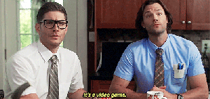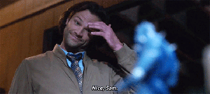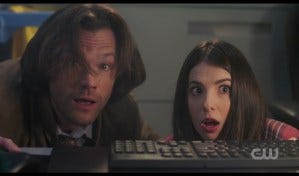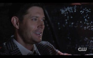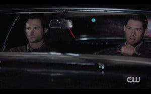 Jensen and Jared said that they watched this episode together last week when it aired in one of their trailers, and when they got to that part they laughed so hard – that was an ad lib that they did just as a joke, and they were surprised and overjoyed to see that it made it into the episode! No wonder it was such a funny scene.