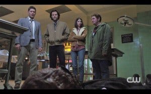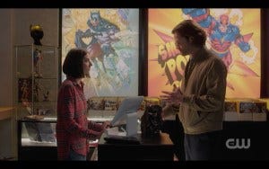 There’s also a fun parallel that goes on in the comic shop, with Dean teasing Sam that Samantha the shopkeeper (in a flannel shirt with longish brown hair) is like his twin.