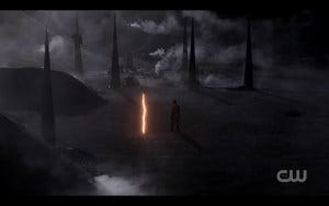 It turns out my doubts are well founded, because Cas ends up in a bleak and desolate post-apocalyptic world (amusingly, both the portal and the structures in it are full of sexual imagery which was not lost on much of the fandom – we’re a Freudian bunch, what can I say?)