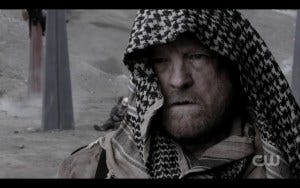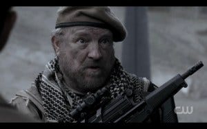 A small moment of humor in a not-very-funny-at-all finale. Sam and Dean get the run down on this other world from a surprising character, the one who Cas recognized on his first trip through the rift. It’s Bobby!