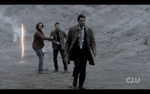 There was no time to even process that loss, though, before Castiel came through and stalked right up to Lucifer, giving Sam and Dean time to get back through the portal.