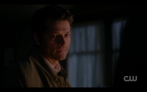 The last Cas-centric episode also left me completely unsure whether Cas was actually sincere about believing that the Nephilim would be born good and might save the world, or if he was being manipulated and fooled. This episode took away all those doubts, even if that’s not really what I was expecting. Cas does believe, and he is in control. (Which made me a little more cranky about him leaving Sam and Dean unconscious in a playground). In this episode, however, Misha Collins shows us Castiel’s softer side. I came to enjoy the bond between Cas and Kelly – there’s a sweetness to it, almost an innocence. They have clearly come to an understanding, and there’s genuine caring there. They are united in their faith that this child can create a different world, a better one. And that means Cas is there for her, holding her hand and trying to comfort her, and buying a crap ton of diapers for a child who will never need them.