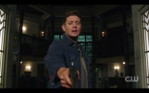 Dean enters, gun raised, his face the picture of torment, and we know right away what he’s here to do.