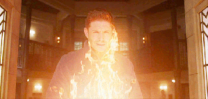 What made it even more upsetting for us is that we’d all seen a tiny clip of what comes next in the preview for the season. Jared looked so beautiful, lit from behind, his hair like a glowing halo. Many of us admired his beauty even though we realized it was Lucifer. Now we realize with horror that the glow in which Lucifer!Sam is basking is the fire that’s consuming his brother. It made me feel briefly sick to my stomach, to have been complicit in not knowing and in feeling anything but horror. It was that upsetting.