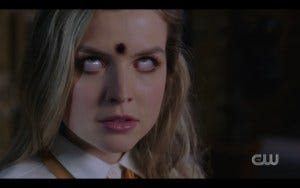 Lilith, it turns out, was in the Empty (score one for Show for remembering that’s where demons go) until God yanked her out (but didn’t someone say that God had no power in the Empty so maybe take away that score, or…?). Anyway, apparently she was supposed to seduce Dean.
