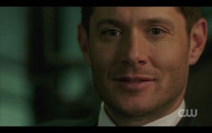 He does smile then, using Dean’s familiar face, the person Sam loves and misses so much. It’s brilliant, and horrible.