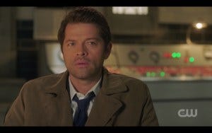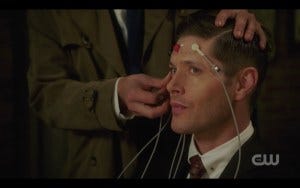 Of course, it can’t be that easy. Michael joins the party in Dean’s brain, and resumes his psychological games with more targeted taunts. He insists that Dean doesn’t care about either Sam or Castiel, that “you just tolerate the angel, because you think you owe him…but all he’s done is make mistakes.”