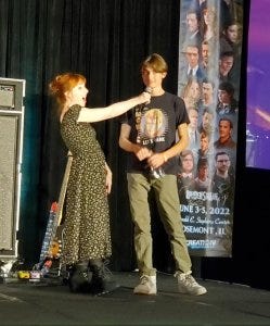 She also convinced Rob’s adorable son Calvin to come onstage and say hi – who can believe he’s about to be off to college?! At DePaul, where my friend Paul Booth teaches some kickass fandom courses he could check out.