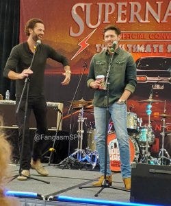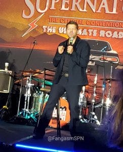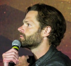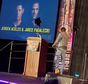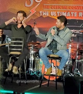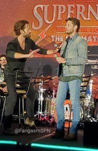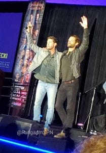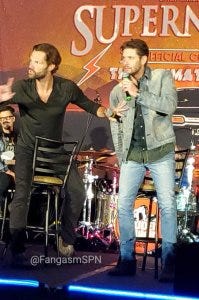 Jared and Jensen did their traditional leap onstage for the main panel, which was good to see since Jared is still in the healing process – hopefully he took it a little easy! They fist bumped after to kick off their panel too, a little expression of solidarity at the start.