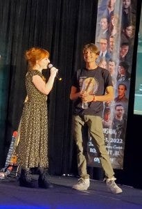 Sunday morning the air was crackling with excitement – everyone missed Jared at the last convention, so it was extra special to have Jared and Jensen on stage together again for the gold panel. And a relief to see Jared for ourselves after such a serious car accident. Jensen joked: I wheeled Jared up here today.
