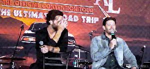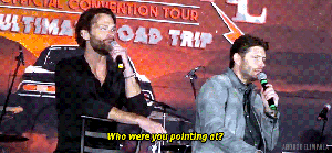 Misha: Every time I approached this table, there was something under it poking me… Then Jensen said, just look at me, but when I did he gave me a kissy face.
