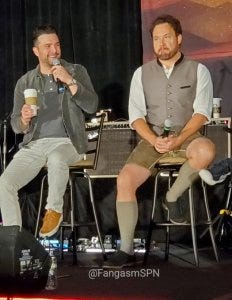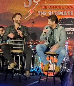 They were asked about their Impalas from the set. Jared said he picked his up at Family Business Beer Co and wanted to drive it home. Jensen said he considered putting a 327 engine in it (for reasons) but decided against it. Both said they are absolutely keeping all the dings and dents. My heart.