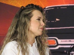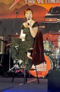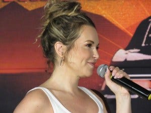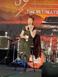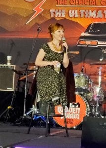 Briana Buckmaster looked and sounded the part of a total rockstar, leopard print dress and black leather jacket and boots – perfection!