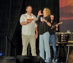 We also had Kim Rhodes looking adorable and singing great harmonies with the band on a version of Cecelia that’s now one of my favorite versions of that song.
