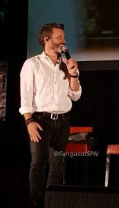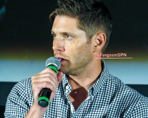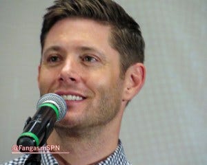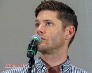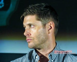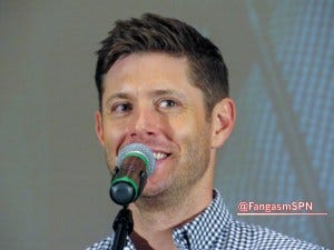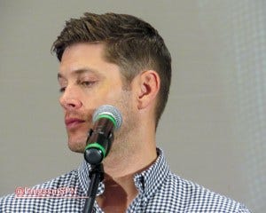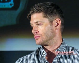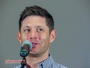 I can’t recall what the last question was, but it prompted Jensen to say again that he wished that final fight between Dean and Lucifer had taken place on the ground instead of with both of them strung up rather awkwardly on cables and trying to fly at each other. It’s clearly bothering him, which I can totally relate to – I hate when things that are important to me don’t go the way I very much wanted them to go. I feel bad for him, but on the other hand, I’m so profoundly grateful that he still cares that much about making a quality show for us after thirteen seasons.