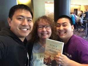 Since I was also in the vendor room with copies of all our books, I got a chance to meet lots of fellow fans and to reconnect with some fans I’ve been friends with since those first conventions – that’s one of the best parts of any con, and I love hearing from people who have read Family Don’t End With Blood and been inspired by it.