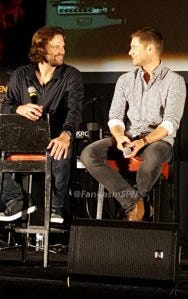 I love that they know each other and each other’s families so well. Someone asked them when they knew they were in love with their wives. Jensen talked about falling in love with Danneel when they were filming Ten Inch Hero. (He’s told me in the past that it was during those long car rides to and from set, which allowed them to really get to know each other on a different level than they already did). Jared said that he couldn’t say exactly when he knew he loved his wife.