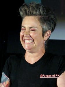 She writes about all the changes Supernatural has brought to her life in her chapter of Family Don’t End With Blood, and it’s clear she really means that. Kim Rhodes writes about that in her chapter as well.