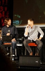 Jared, being helpful and gesturing at Jensen: I know, he’s handsome, isn’t he?