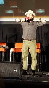 Rob showed off this con’s traditional Borja shirt, one of the newer traditions that Supernatural cons have spawned. Every con has a shirt in honor of Mike Borja now – hard to explain, but let’s just say it’s already a beloved tradition. This con’s was “Air Borja” and Rob proudly showed it off.