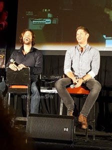 They also told a lot of funny stories from set, including that time Ruth tried to prank Jensen and Jared by carrying in some lube (which they do use on the show….for other reasons…) and making some innuendos about it. J2 didn’t laugh, and then Misha just picked her up and carried her off.