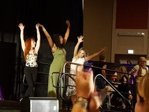 Matt Cohen had to leave early, alas, but Chad, Ruth, Lisa, Briana, Rachel and Kim did a fabulous job of cheerleading as we all jumped up to dance for ‘Mama’s Jam’.