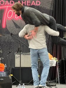And then it was time for the J2 main panel, the final one of the day. Jared and Jensen did their traditional leap onstage. Video of the jump: