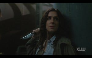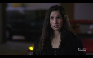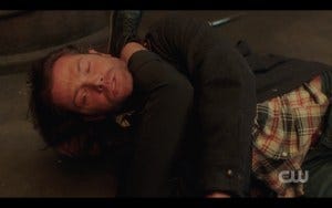 R: Everything she does previous to that scene – when she did that hospital scene and expressed her fear to Dean and in the hotel room telling him she doesn’t know what she’ll do now because her friends are all dead? That scene rips your heart out.