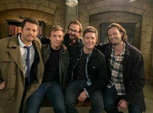 L: It did! Okay, last question. You have a beautiful chapter in There’ll Be Peace When You Are Done that talks about why Supernatural has been so special. It has really resonated with people, and I’ve heard from a lot of fans about how inspiring they find your words in that chapter. We’re not a perfect family, but this is our family, which fits right into the theme of the show and the SPNFamily. I think we’re all feeling very emotional now that they are back up in Vancouver to shoot the last two episodes. What was it like directing your last episode and saying goodbye?