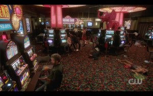 R: Yes, the casino scene was the first time I directed Rob, though it wasn’t a huge scene. Rob and I have a shorthand, we already know each other, and those roles are not weird for us. I think he’s a great actor. I think he trusts me as a director so we just snap into that and dive in. It was a big wide tracking shot with Steadicam and a cool reveal.