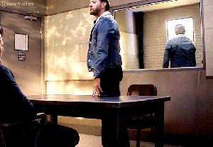 He pulls his jacket aside and shows off his badge and damn I love that he wears it there so he can dramatically show it off, just saying.