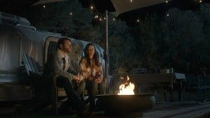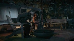 And where’s our favorite sheriff? Curled up on his deck chair outside under a blanket while Carla and Emily sleep in his trailer. Keeping watch, a rifle at his side ala Dean Winchester with his knife under his pillow.