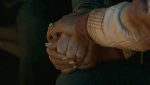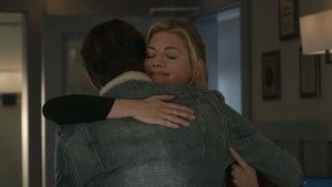The other cliffhanger from the last episode was Buck inside the cabin with a captive Paige and Cassie outside the door – but Buck stashes Paige in the basement and lets Cassie in, calmly offering her coffee and pie with a giant knife on the table in front of them. Creepy!! Cassie tells him to drop the act, she knows that Walter is Sunny’s son and that he lied about the truck. It’s getting scarier and scarier when suddenly Jenny calls and Cassie has to go – one second before Paige finally manages to break a lamp and make some noise. Uh oh, Buck is PISSED.