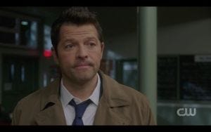 Lynn: I can’t even imagine how emotional it was for you, after all this time and this being such an incredible, life-changing journey. This was one of those quintessential Supernatural episodes that has a little bit of everything – humor, excitement, and emotion. All of them came together, but it was a complex episode. The emotional moments are probably my favorite things about the show – in this episode, like the scene when Castiel talks about his journey – finding a family, becoming a dad.