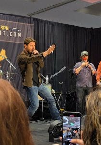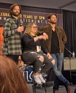 Jared: Like the saying, pain is mandatory, suffering is optional. One of the great things about Supernatural, because of the genre and this SPN family and y’all sticking with us and us sticking with y’all, is we get to explore these really uncomfortable situations unlike other shows and movies. We get to explore, and go yeah you lost your uncle, yeah you lost your dad, yeah you lost your mom – now she’s back in the universe and you get to deal with…