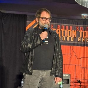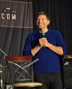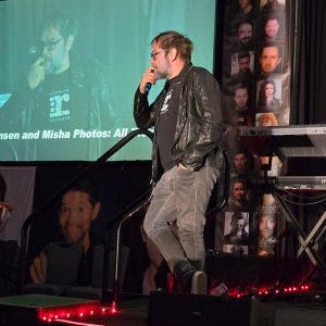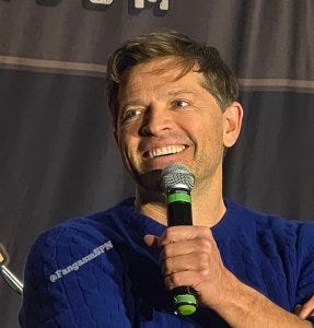 He’s amusingly snarky at panels, and a sincerely thoughtful and kind person in real life.