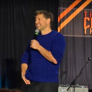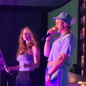 Jensen took an impromptu turn singing for 20 seconds and couldn’t help instantly looking like a Rockstar…