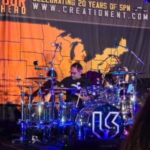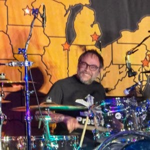 Mark Sheppard played drums, looking as always so happy to be doing so!