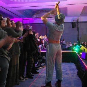 Friday night was karaoke, and it was an off the charts one! Partly because the stage had an actual runway, which both the cast and the fans took great advantage of.