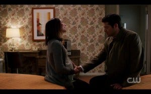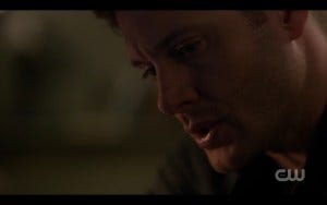 As much as it’s tempting (for viewers as well as characters) to want to tell Dean to cut “the drama”, I have a knee jerk reaction to that. When I teach my students how to be counselors, “drama” is one of the words they’re not allowed to use, because it’s usually a way of dismissing emotions—and that’s not therapeutic for anyone. To tell a man who has struggled with even accepting and recognizing his own emotions, let alone expressing them (thanks to his father’s explicit instruction), to calm down and cut the drama is one of the most damaging things I can imagine. (In case you’re worried that I’ve lost my freaking mind and am getting truly worried about a fictional character’s mental state, I haven’t lost my awareness of reality. I’m just trying to analyze these characters and their situation AS IF they were real, so I can make sense of their reactions.) (No, really…)