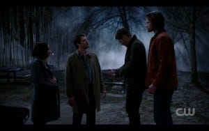 That said, perhaps that’s exactly what Show wanted me to feel. That last episode did such a good job of setting up the emotional connection between Cas and the Winchesters, and sometimes that is exactly what this Show does when it’s getting ready to punch you right in the heart. It’s a bit of a Supernatural tradition dating back to Kripke, and it’s most definitely been the cause of entire lost days of my life railing and screaming and generally shaking my fist. That’s because I care – a lot. I care about Cas and Sam and Dean and I care about how they care about each other.