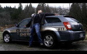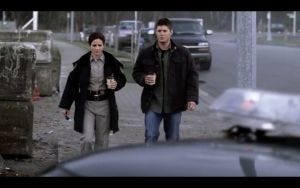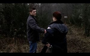 Dean and the sheriff continue looking, and Dean can’t resist asking why she’s helping him out instead of locking him up.