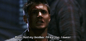 Dean: You hurt my brother, I’ll kill you, I swear! I will kill you all!