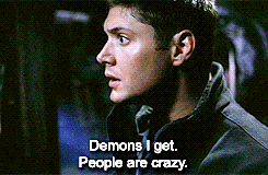 Dean: I’ll say it again. Demons I get, people are crazy.